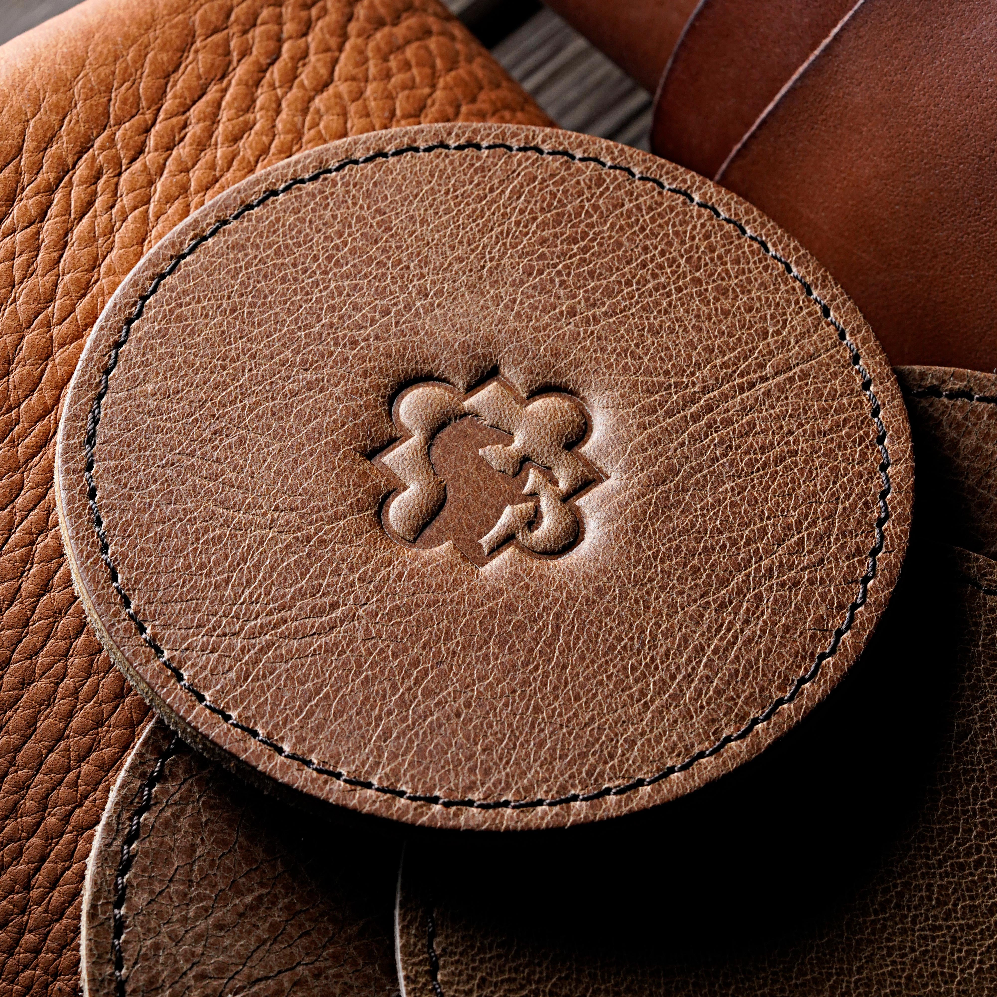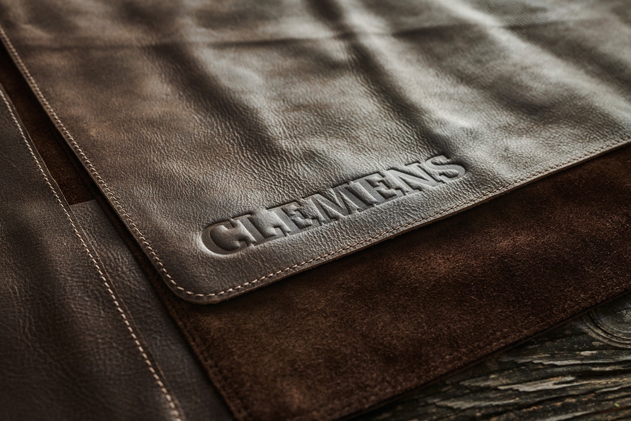 We press a custom metal stamp into the leather at high temperature, subtly altering the colour and creating a permanent, clean impression. Even the embossed areas remain easy to wipe clean, as the leather surface is not damaged during the process.